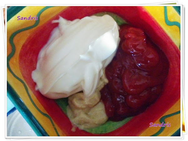 Para la salsa, tenía ganas que tuviera un toque picantito y un toque de mostaza, así que le puse un poco de los dos y quedó con un sabor muy agradable sin llegar a picar demasiado; un toque picante en su justa medida!!!