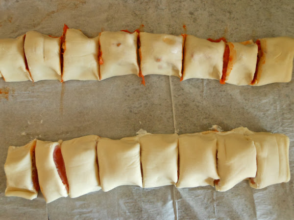Por último precalienta el horno a 200ºC y hornea los rollitos de hojaldre durante 12 minutos o hasta que estén dorados y crujientes.
