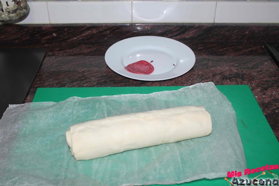 Cogemos la masa y la enrollaremos y después cortaremos rodajas de unos dos dedos de grosor.
