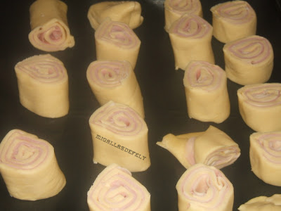 doblar cortar... y poner en la bandeja del horno, el tiempo que sea necesario para que queden horneados 15 o 20 minutos (dependiendo del horno)
