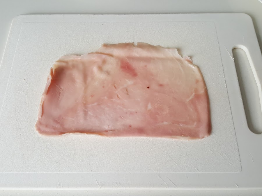 2. - Ponemos una loncha de jamón sobre la tabla o encimera.