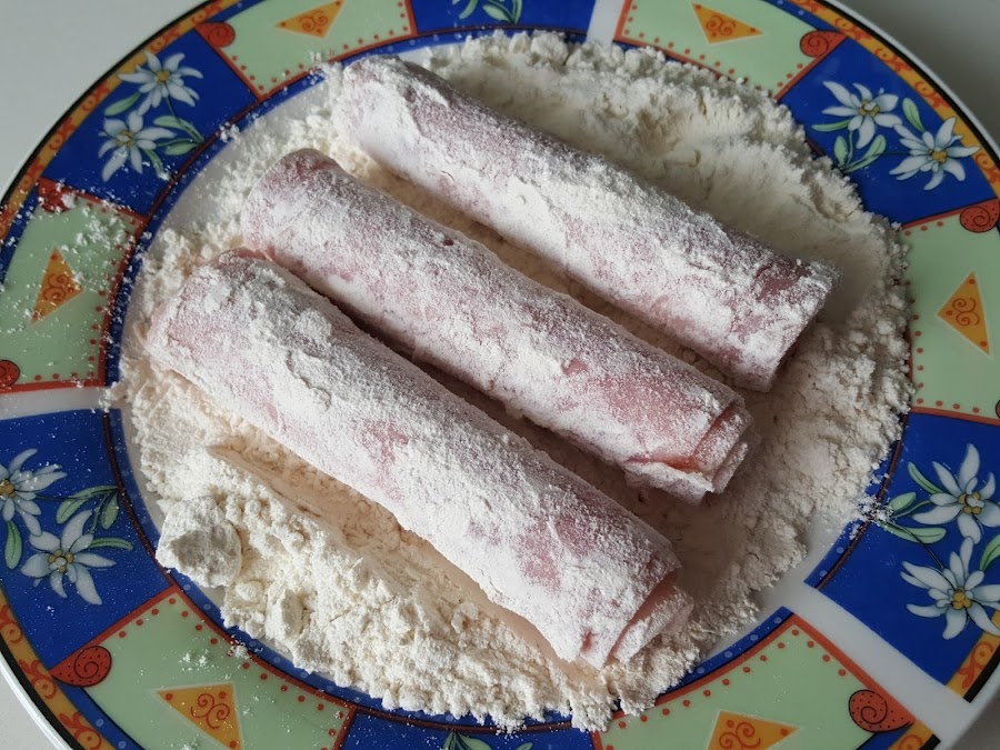 La pena es que cuando fui a coger el jamón, sólo me quedaban 3 lonchas, así que sólo he podido hacer tres tristes rollitos....