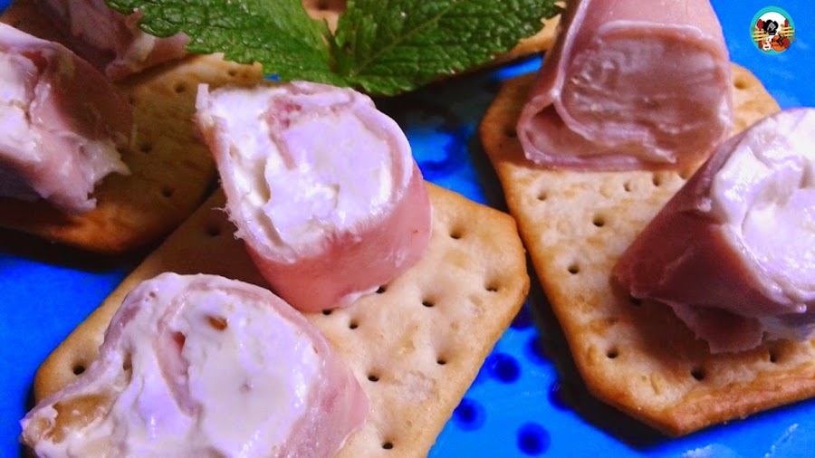 Bocados que se preparan en un pis pas, deliciosos y fáciles de hacer. Como estos rollitos de jamón con queso y nueces.Rollitos de jamón con queso