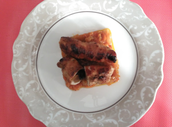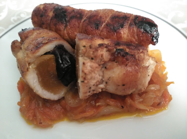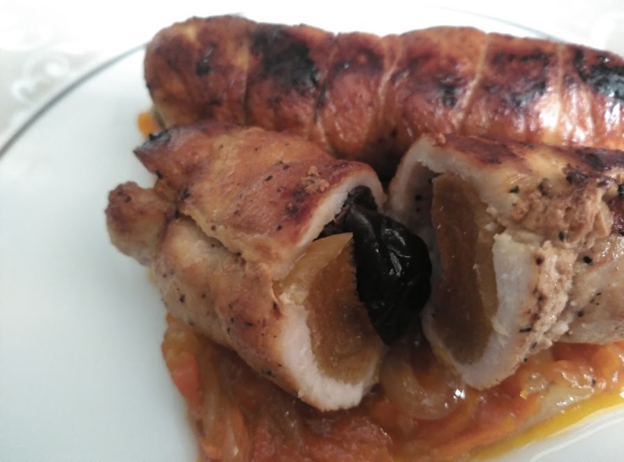 Presentar con una cama de la verdura y encima los lomos rellenos.