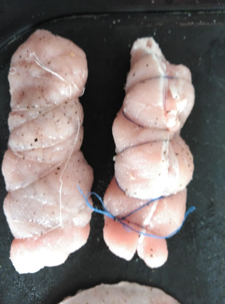 Estira con un rodillo los filetes de lomo para que queden mas finos y grandes. Salpimienta.