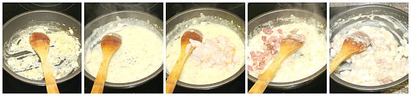 Cuando esté bien pochada le añadiremos la cucharadita de harina y la dejamos un minuto para que se tueste un poco, removiendo sin parar.