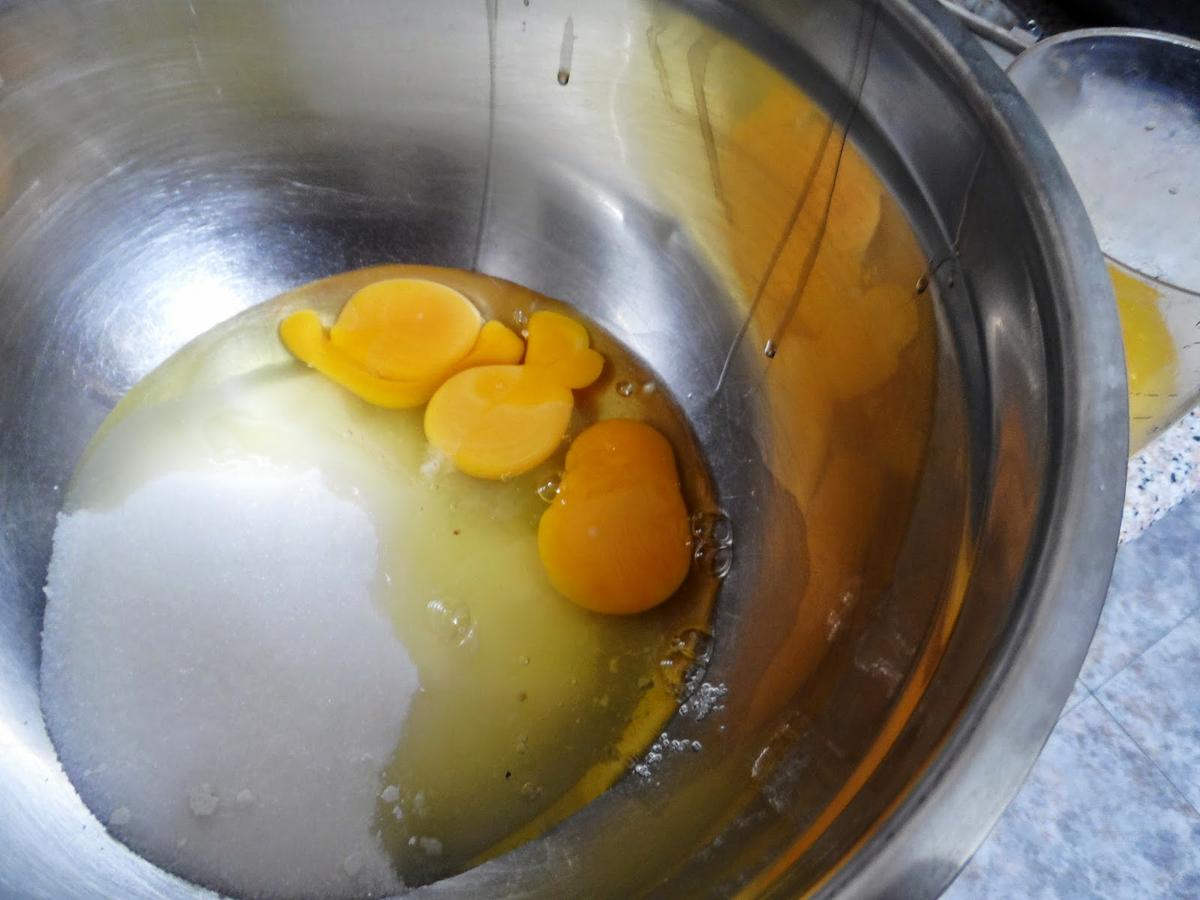 mezclamos los huevos el azucar y el zumo