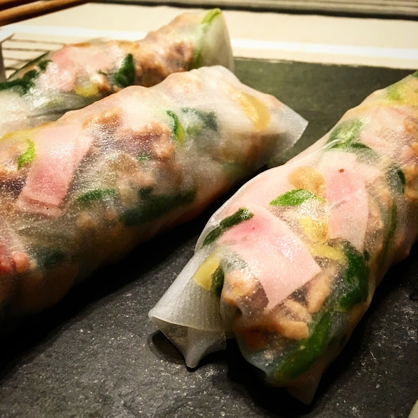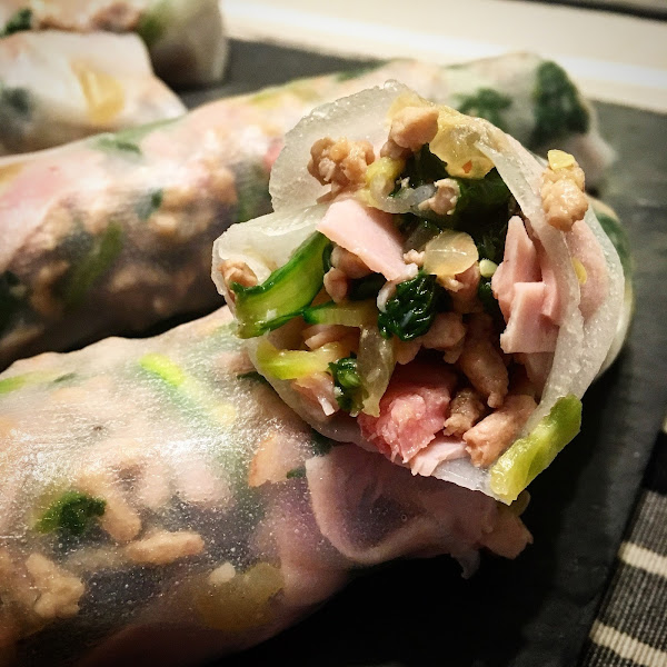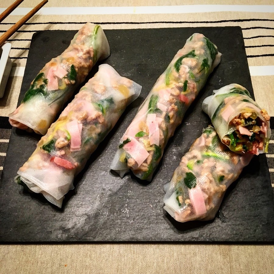 Ahora tenemos todos los rollitos ya hecho, pero es posible que en el proceso de hacerlos se haya quedado el relleno de carne y verduras algo frio.