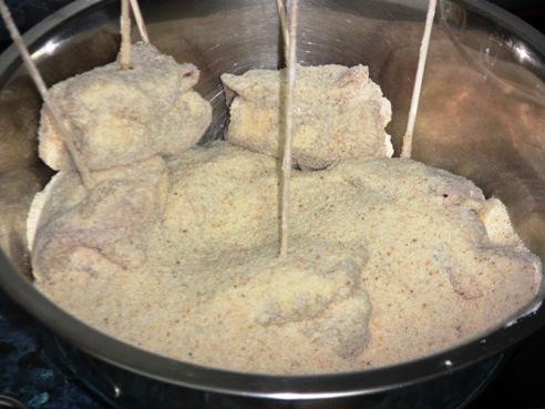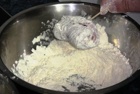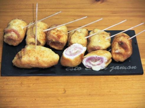 Todo el mundo conoce los flamenquines, yo pensé, porque no hacerlos mas completos, con esto y una ensalada de tomate… cené la otra noche de lujo. También pensé en poner algo mas en el interior, pero me pareció que iba a quedar algo inmanejable, en cualquier caso lo reservo para otra receta posterior.