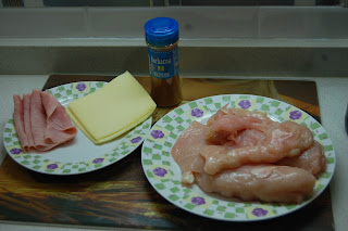 4 filetes de pechuga de pollo,4 lonchas de jamón cocido,lonchas de queso,vino oloroso,sal,aceite,especias barbacoa mix hacendadoEsta es una forma difernte y sencilla de comer las pechgas de pollo, evitando los rebozadosy fritos,