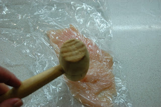 Extender los filetes entre dos hojas de film y golpear para estirar, salar y espolvorear con un pellizquito de las especias barbacoa.