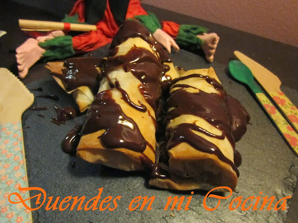 ROLLITOS DE PLÁTANO Muy buenas tardes, os voy a explicar de mejor manera posible cómo se hace este postre. Lamentablemente no tengo fotos del paso a paso de la preparación pero como los que os pasais por aquí sois muy espabiladas os ireis imaginando lo que os estoy contando porque es muy facil. Ingredientes: Masa filo, la encontrais en cualquier supermercado. De una hoja os pueden salir hasta tre ...