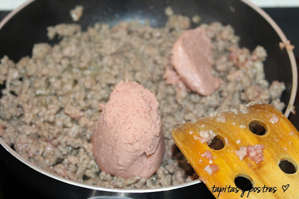 Cuando la veamos casi hecha (cinco minutos) agregamos el paté y el tomate frito y damos unas vueltas para que se integren bien,