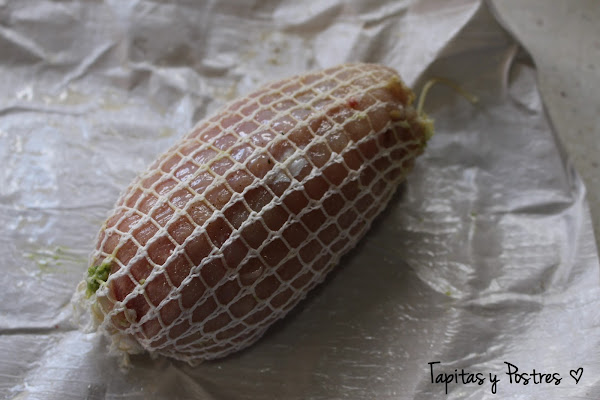 Enrollamos y liamos con hilo de cocina o con una redecilla.