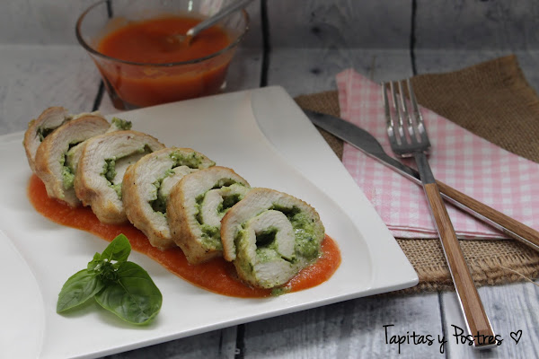 Una forma distinta de comer pollo. Si os gusta la salsa pesto os gustará esta versión.
