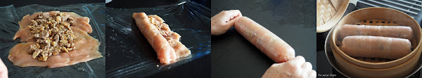 Colocar una vaporera (puede ser de cualquier tipo) sobre una cazuela con agua al fuego, tapar y cocer los rollitos al vapor durante unos 15 minutos aproximadamente.