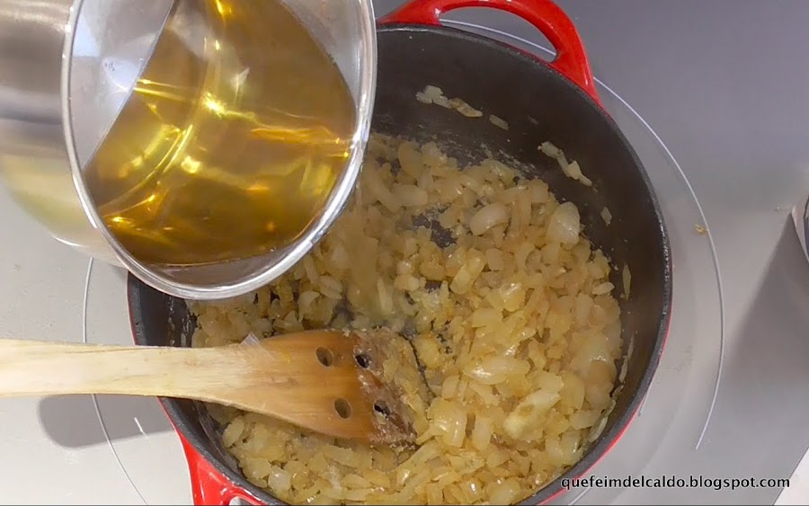 Seguidamente incorporamos la mistela que la habíamos calentado en un cazo.