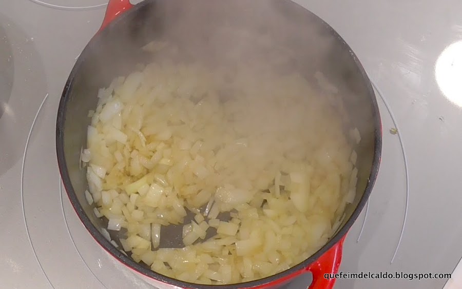 Una vez doradas las pechugas de pollo, reservamos. En la misma cazuela pochamos la cebolla durante alrededor de 10 minutos.