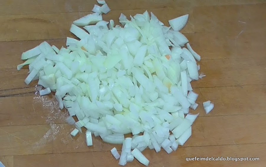 En primer lugar limpiamos y cortamos muy fina la cebolla.