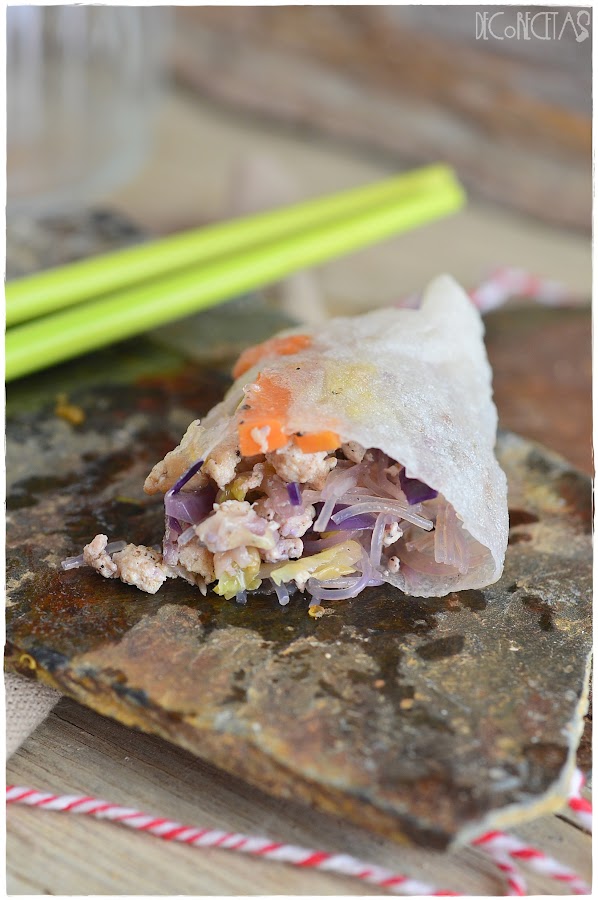 Aconsejo encarecidamente que los comáis recién sacados de la sartén ya que el papel de arroz queda crujiente y si dejáis pasar unos minutos esto cambia y aunque están igual de ricos no es lo mismo