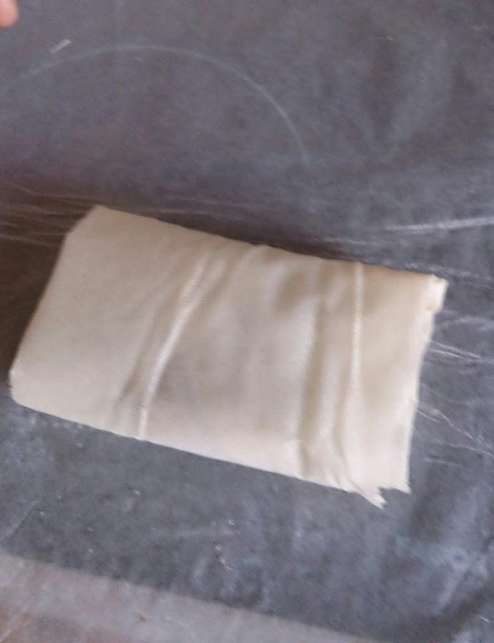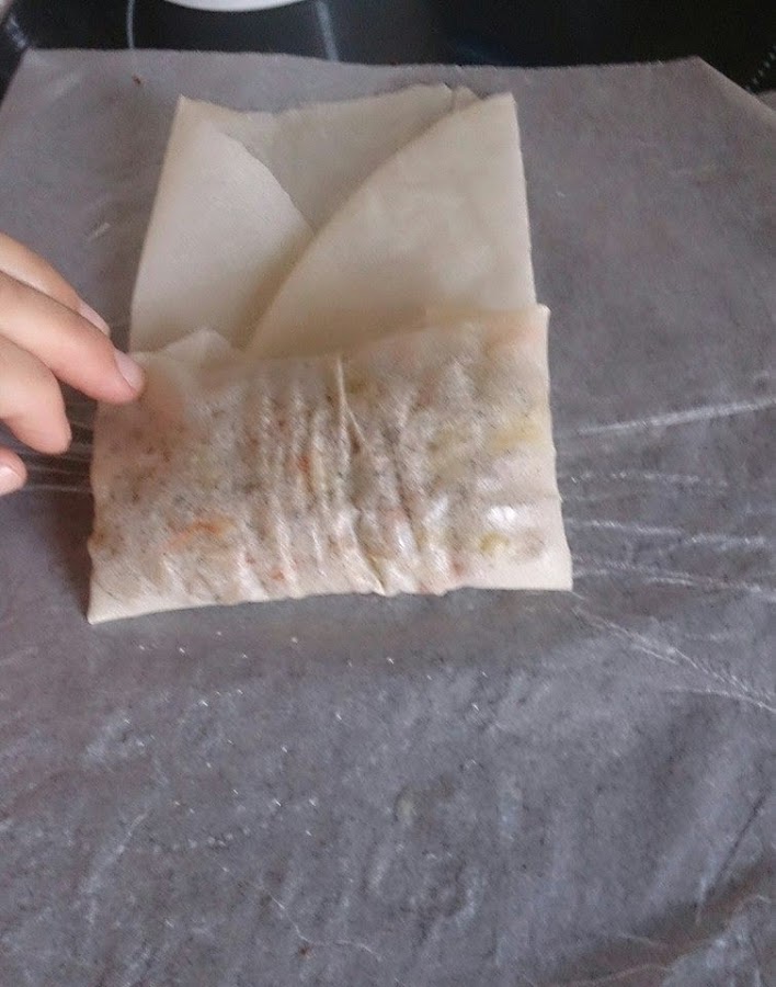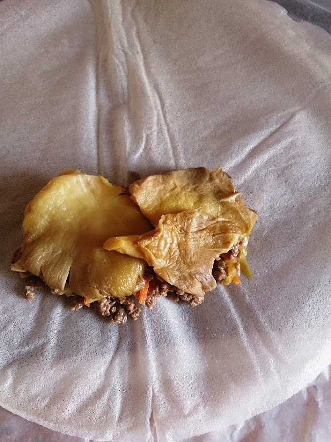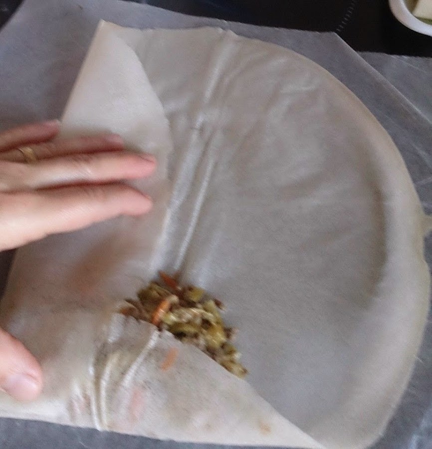 Poner un poco de relleno hacia un lado (es ahora que me doy cuenta que tendría que haber sacado la foto de toda la masa entera)