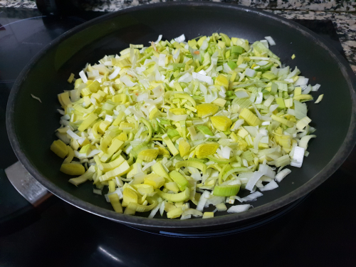 En una sartén ponemos un chorrito de aceite y una vez caliente sofreímos las verduras para que queden al dente.