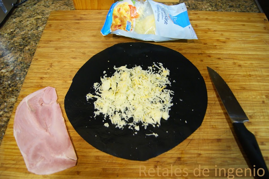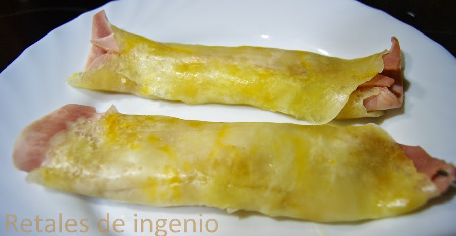 Una vez fundido el queso, poner una loncha de jamón dulce encima y enrollar.