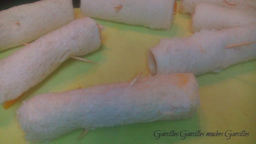Enrollar las rebanadas y sujetar con un palillo