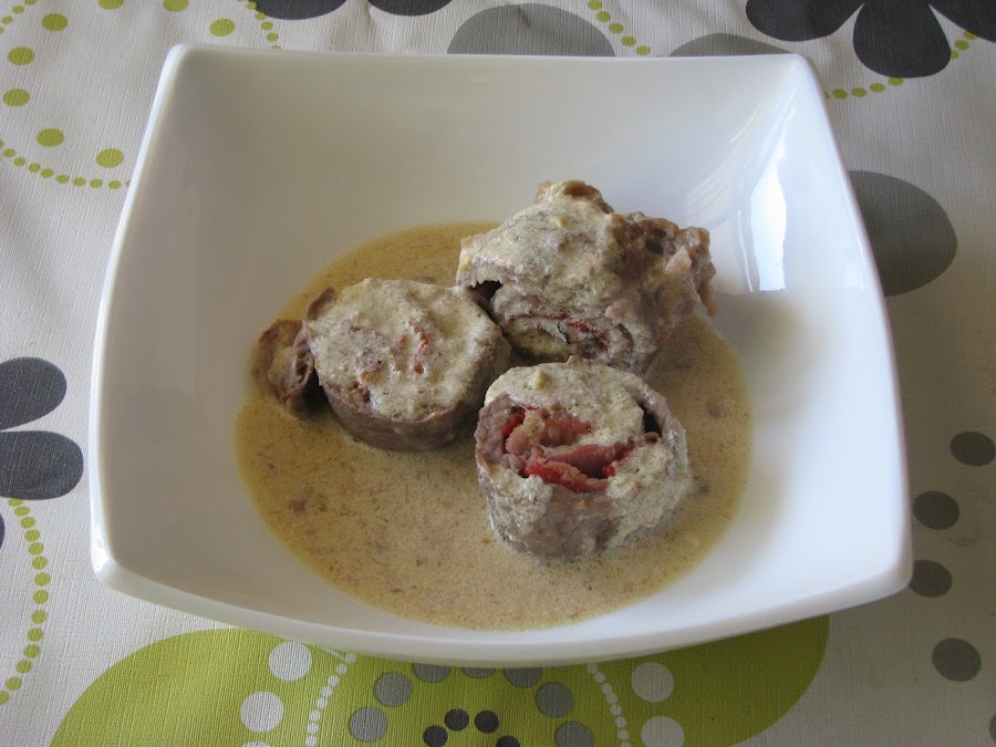 - Corta los rollitos de carne en rodajas de 2 cm aproximadamente.