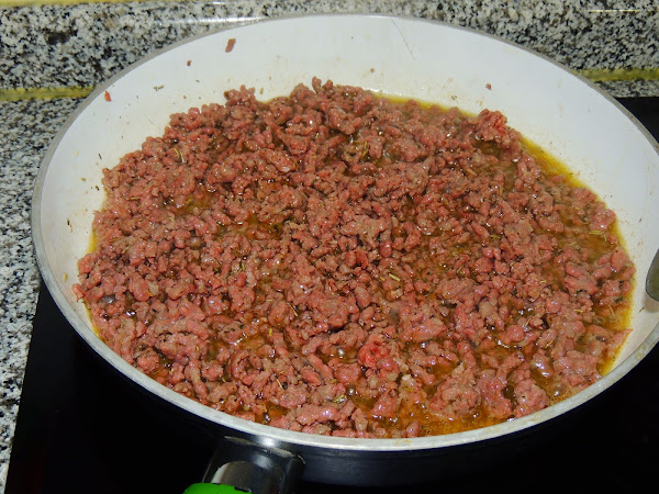 En una sartén se sofríe la carne, a la que se añaden las hierbas, la sal, las semillas de sésamo y la pimienta.