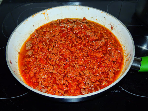 Cuando está ya listo, se le añade el tomate frito y se le da unas vueltas.