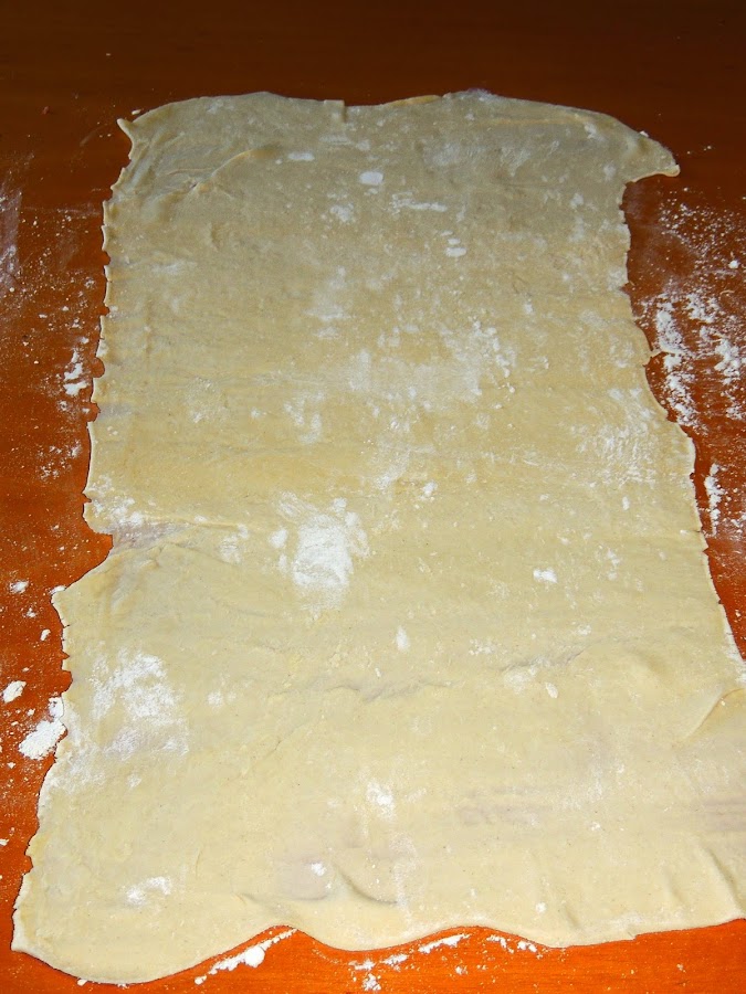 Por otra parte, se enharina bien la mesa y se extiende el hojaldre con ayuda del rodillo.
