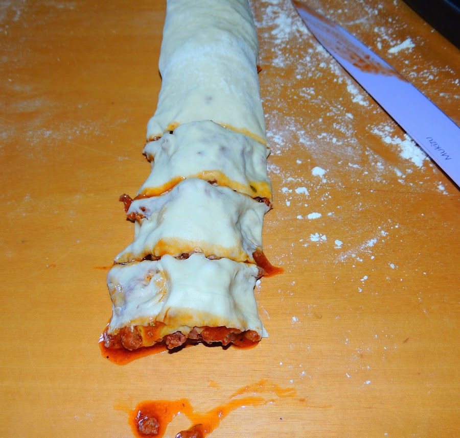 Se termina de enrollar y se corta en rodajas de dos dedos.