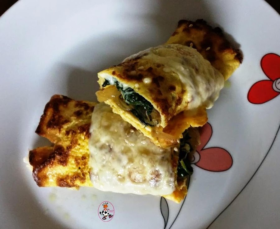 Marchando unos ricos rollitos de tortilla francesa rellenos de espinacas,cebolla y queso!!!