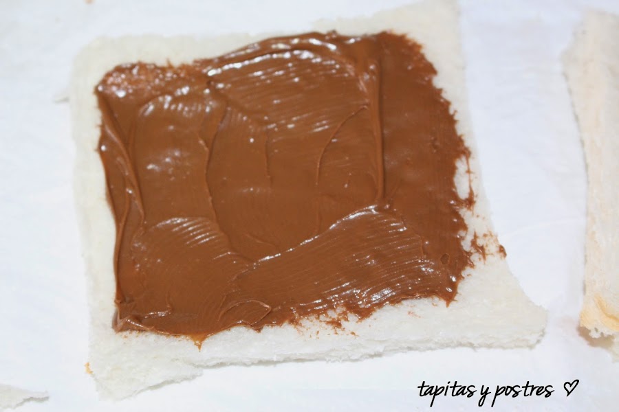 Untamos generosamente de nutella toda la rebanada, sin llegar al final.