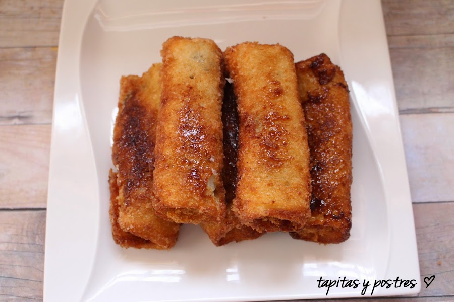 El rebozado de azúcar y canela se carameliza al freírlos y deja una costra crujiente y dulce por fuera.