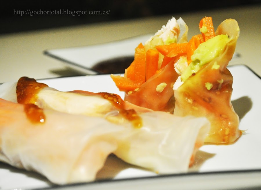 Estos rollitos son muy sencillos de hacer, al igual que la salsa hoisin ,muy parecida a la salsa del típico pato pekinés.Se vende también preparada en tiendas asiáticas..Les he querido dar un toque diferente con aguacate y no salió mal.