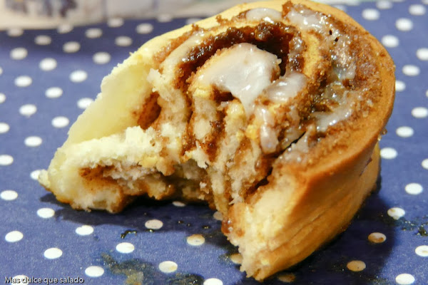 Os dejo la receta, y espero repetirla pronto con la típica masa de los cinnamon rolls para que los que no encontréis la masa "yeast dought " también los podáis probar.