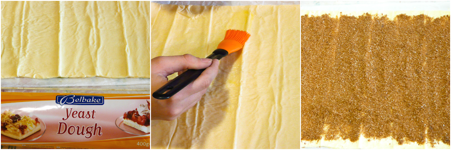 Estirar la masa y pincelar con un poco de mantequilla derretida.