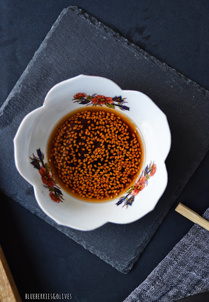 Para preparar la salsa, vierte primero el azúcar con el vinagre y mezcla hasta que se disuelva bien. Después añade la salsa picante o chile (elije la cantidad según quieras más o menos picante), la salsa de pescado, el sésamo tostado y el aceite de sésamo. Mezcla bien y sirve en uno o varios boles.