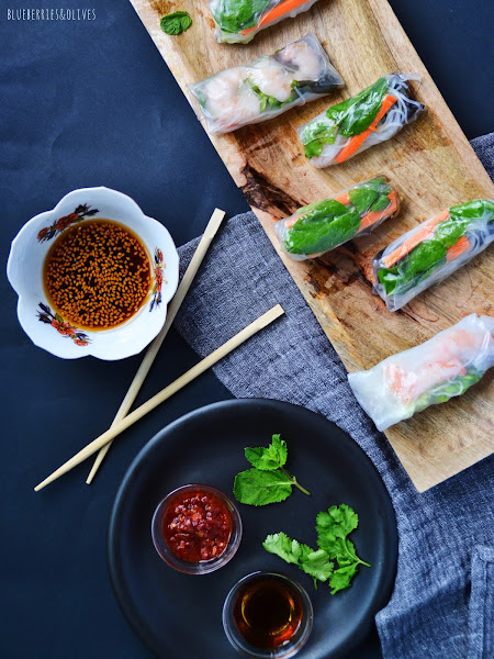 Estos rollitos a diferencia de los típicos de primavera chinos y los nems vietnamitas, son frescos y no fritos, lo que los hace mucho más ligeros. Son ideales para un picoteo sano, como aperitivo o para una cena sencilla y ligera pero con muchísimo sabor. Las hierbas frescas como la menta y el cilantro le dan un toque súper fresco, la zanahoria y la lechuga ese lado crujiente, y fundamental son para acompañar, las salsas. En esta ocasión os doy una opción de salsa bastante sencilla, aunque hay muchísimas otras opciones ya sea dulce con cacahuete, de mango, súper picante, etc...
