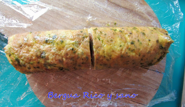 6. Finalmente lo desenvolvemos y cortamos los rollitos. Hacemos un corte en el centro primero, después vamos cortando rollitos de más o menos 2 cm de ancho.