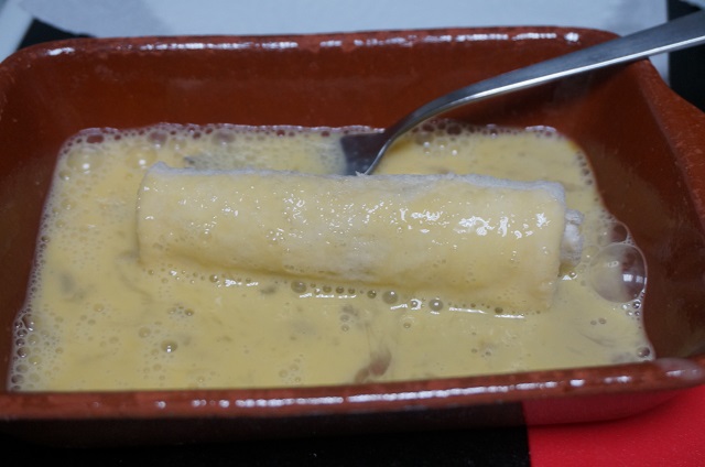 Los prepararemos todos, se pueden dejar listos en la nevera hasta la hora de hacerlos. Batimos el huevo y lo mezclamos con la leche.