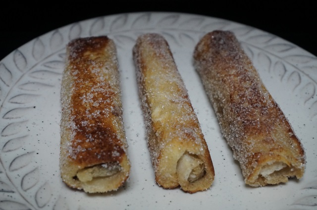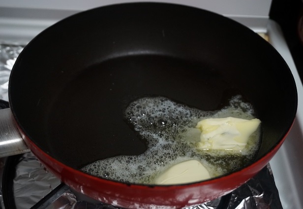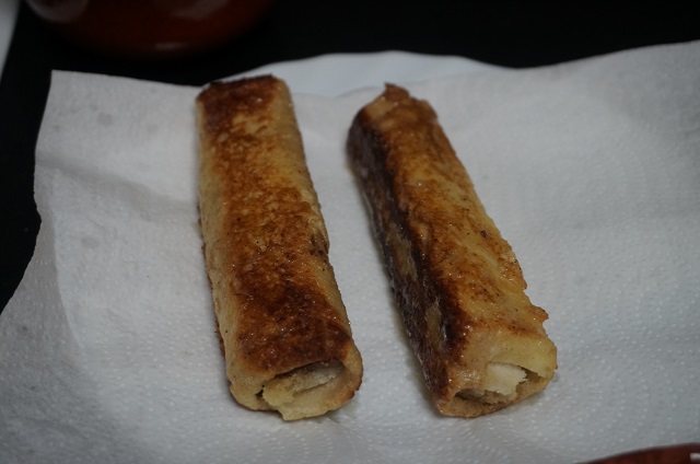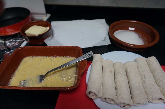 Cuando la mantequilla esté caliente iremos poniendo los rollitos de dos en dos y los iremos dorando.