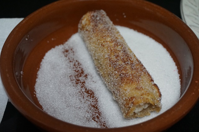 Preparamos un plato con papel de cocina, en otro bol pondremos azúcar. Ponemos una sartén al fuego con un buen trozo de mantequilla, el fuego no debe de estar muy fuerte, no se ha de quemar la mantequilla.