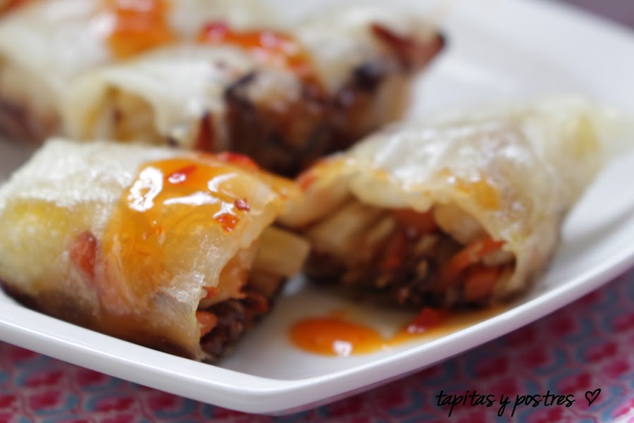 Yo os voy a dejar mi versión libre de los rollitos tailandeses (que no se me enfaden los puristas de la comida oriental).