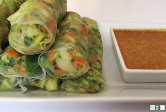 Para el montaje de los rollitos, seguir los puntos 2, 3 y 4 de la elaboración sin Thermomix.-salsa de cacahuetes