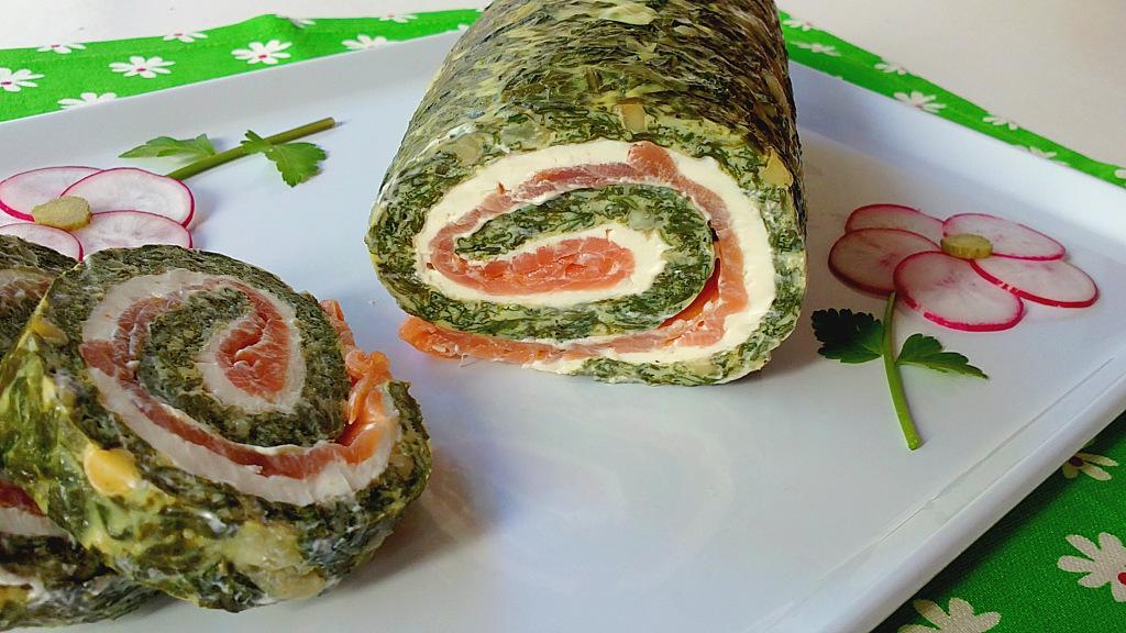 Rollo de acelgas, salmón y queso