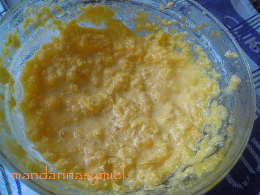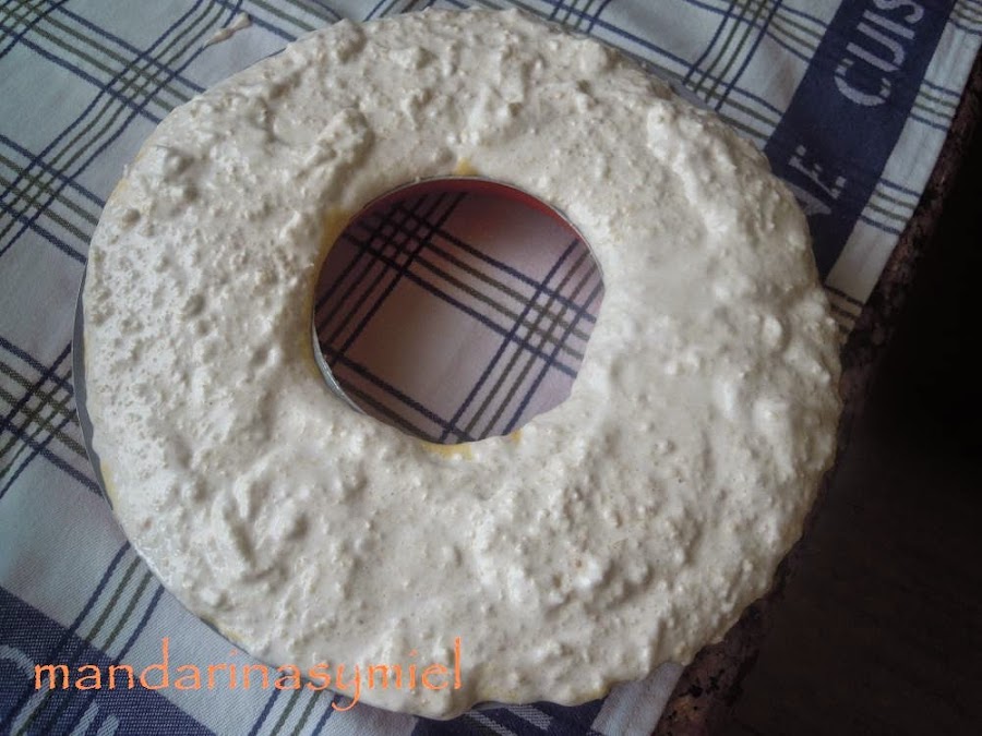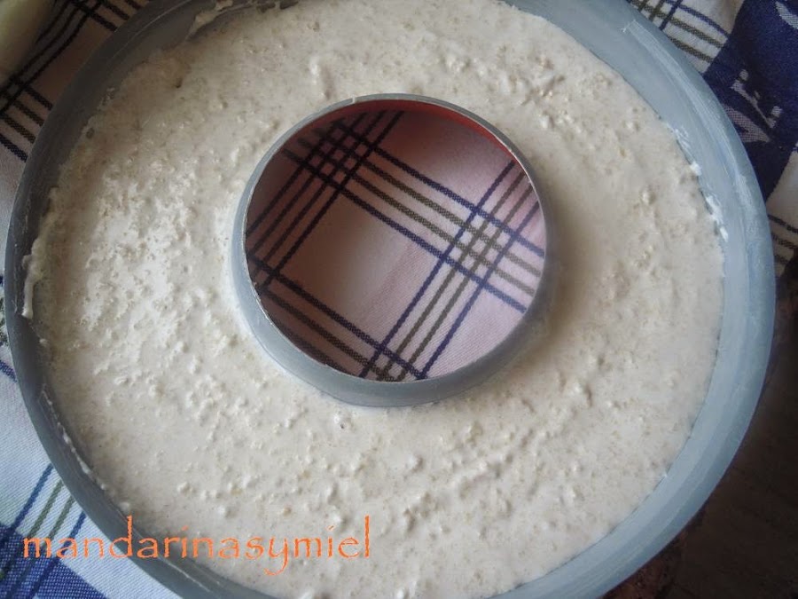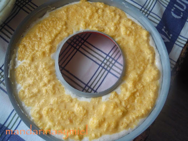 Unta un molde en forma de corona con mantequilla, y espolvorea con harina para que no se pegue.