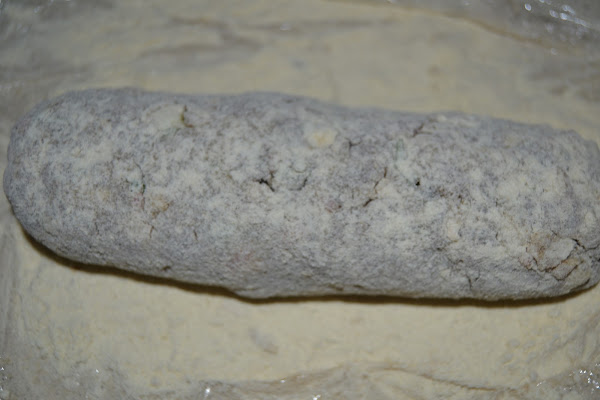 Formamos los rollos, (yo hice cuatro) ayudandonos con papel film, pasamos por harina y freímos en aceite de oliva.
